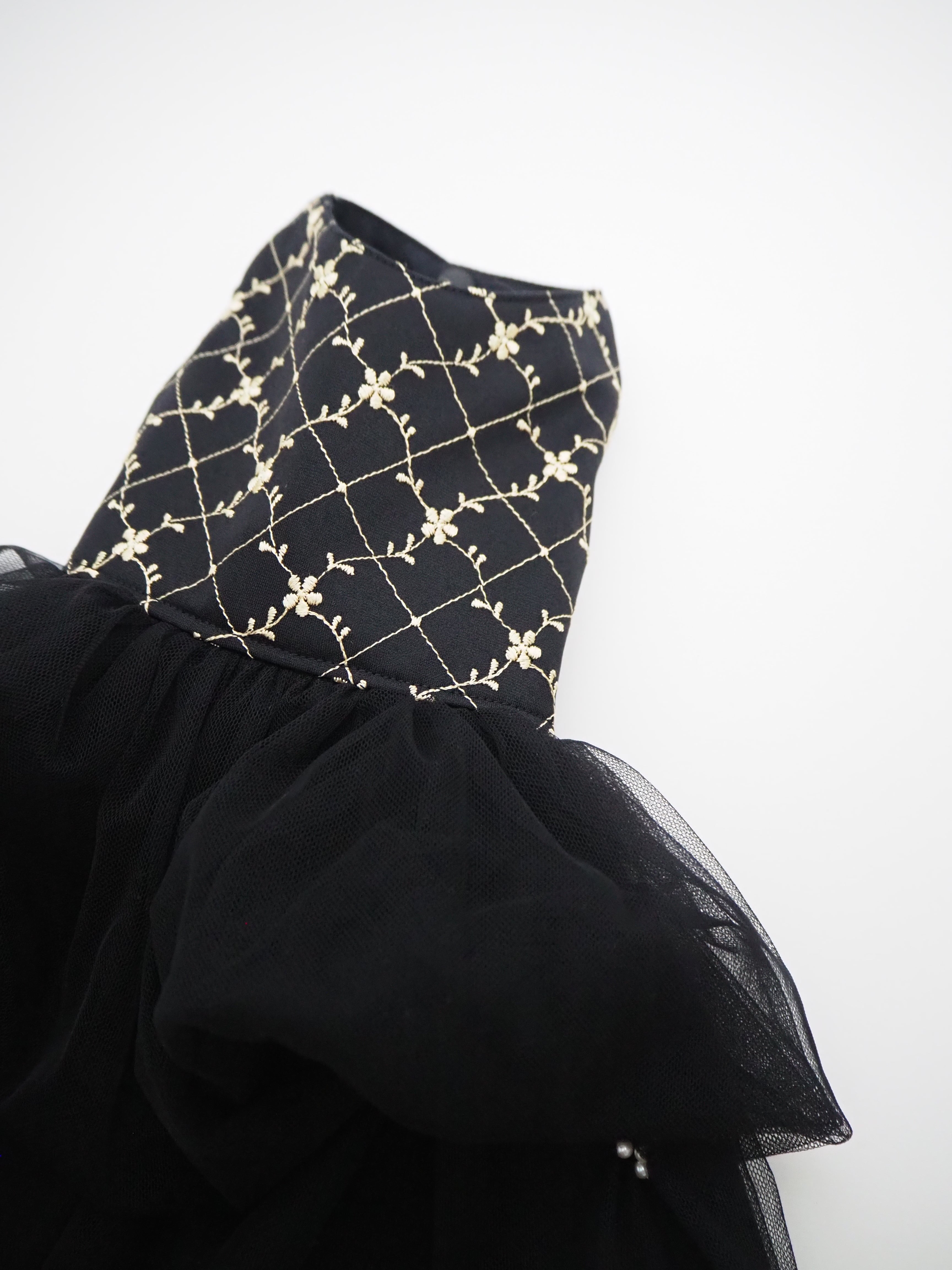 ゴールドの小花の刺繍と