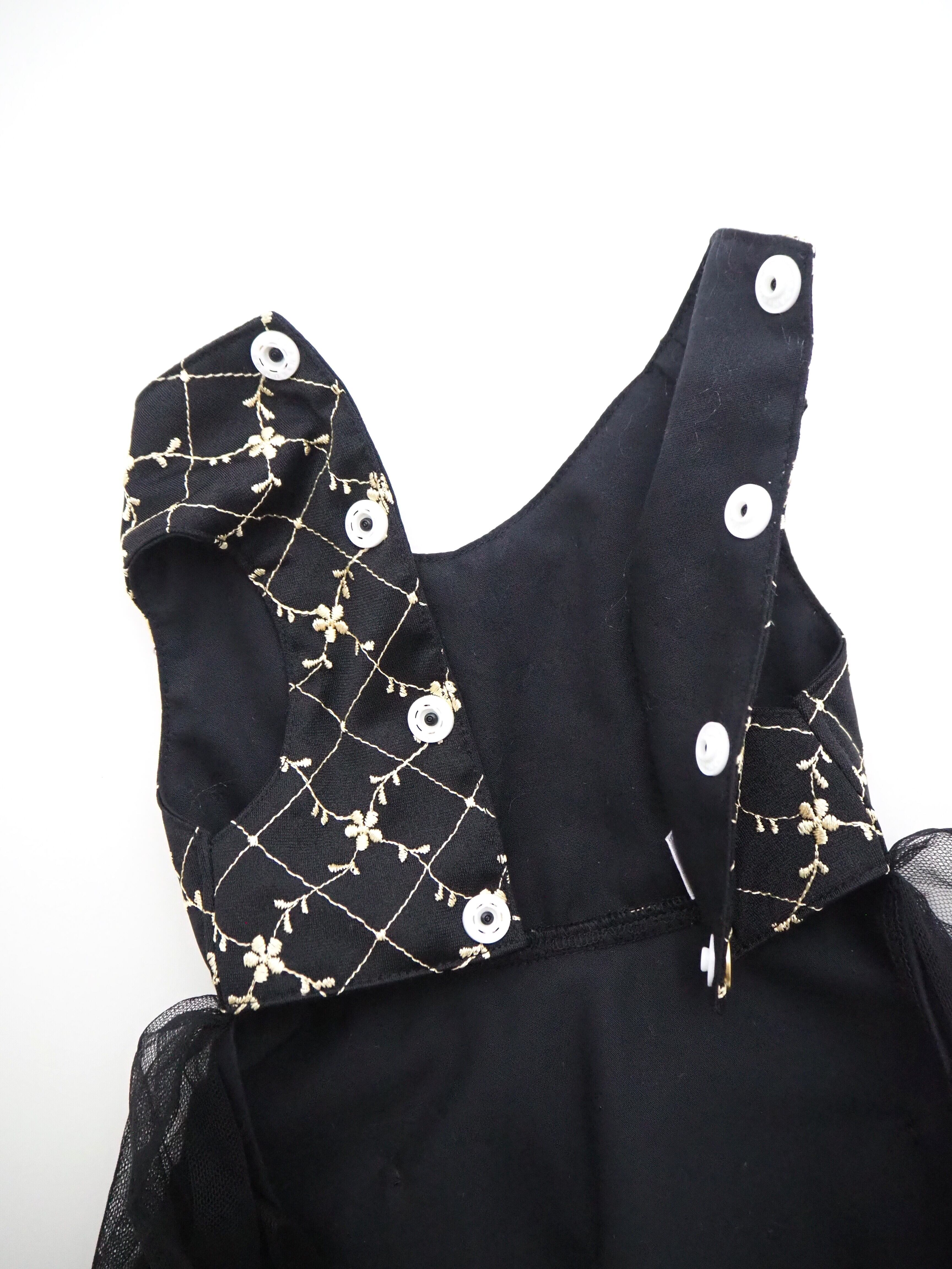 金ボタンが、ブラックドレスを引き立てます。