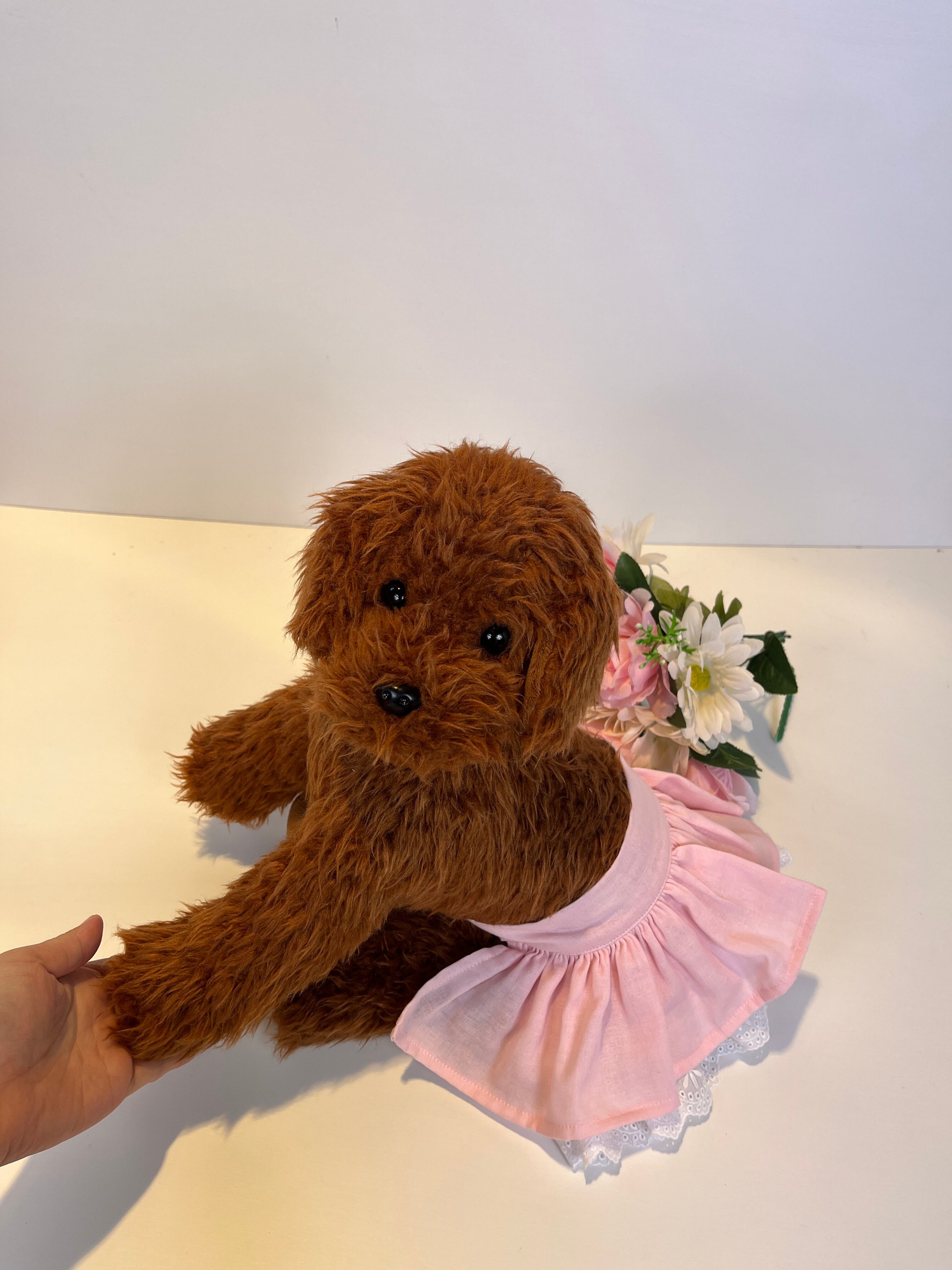 ピンクのふわふわガーゼ生地とレースを合わせた王道デザイン