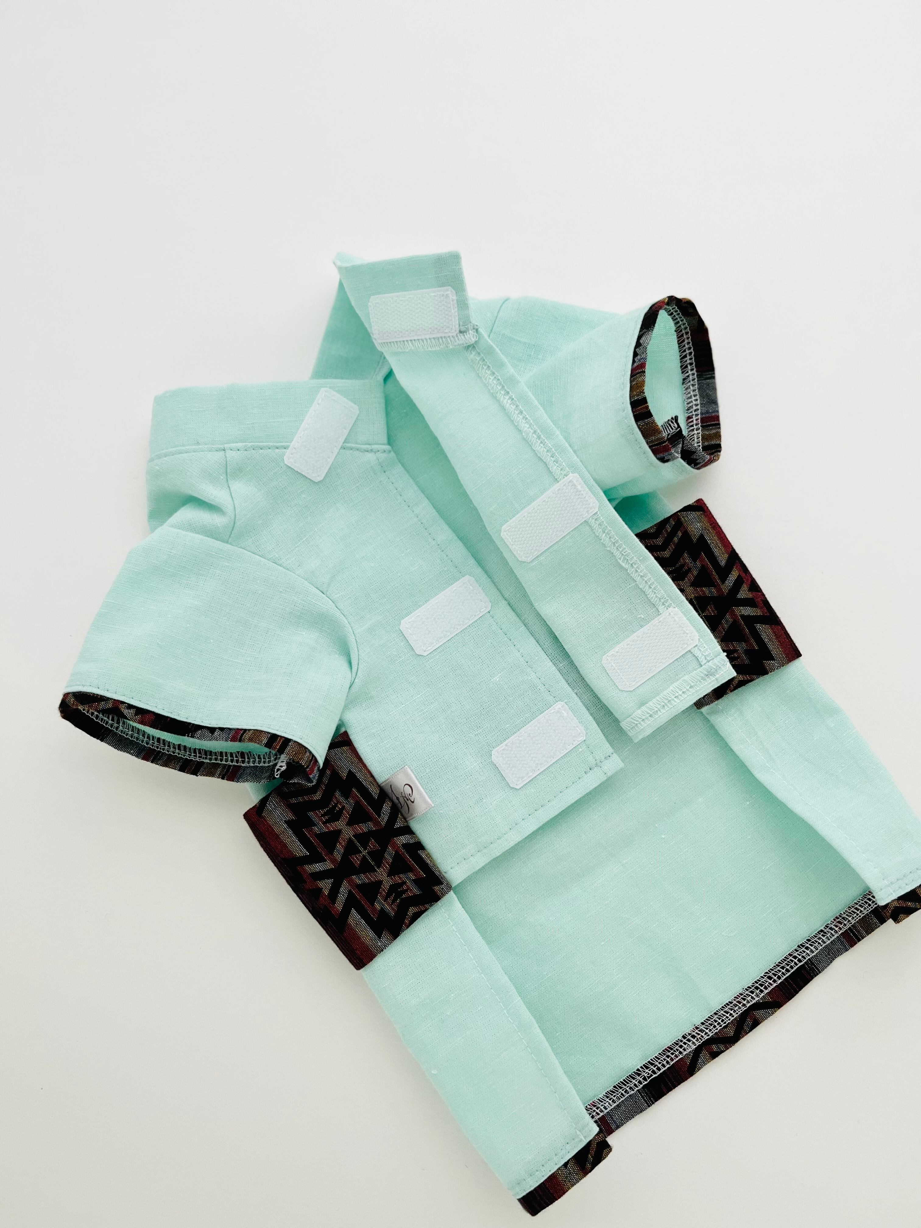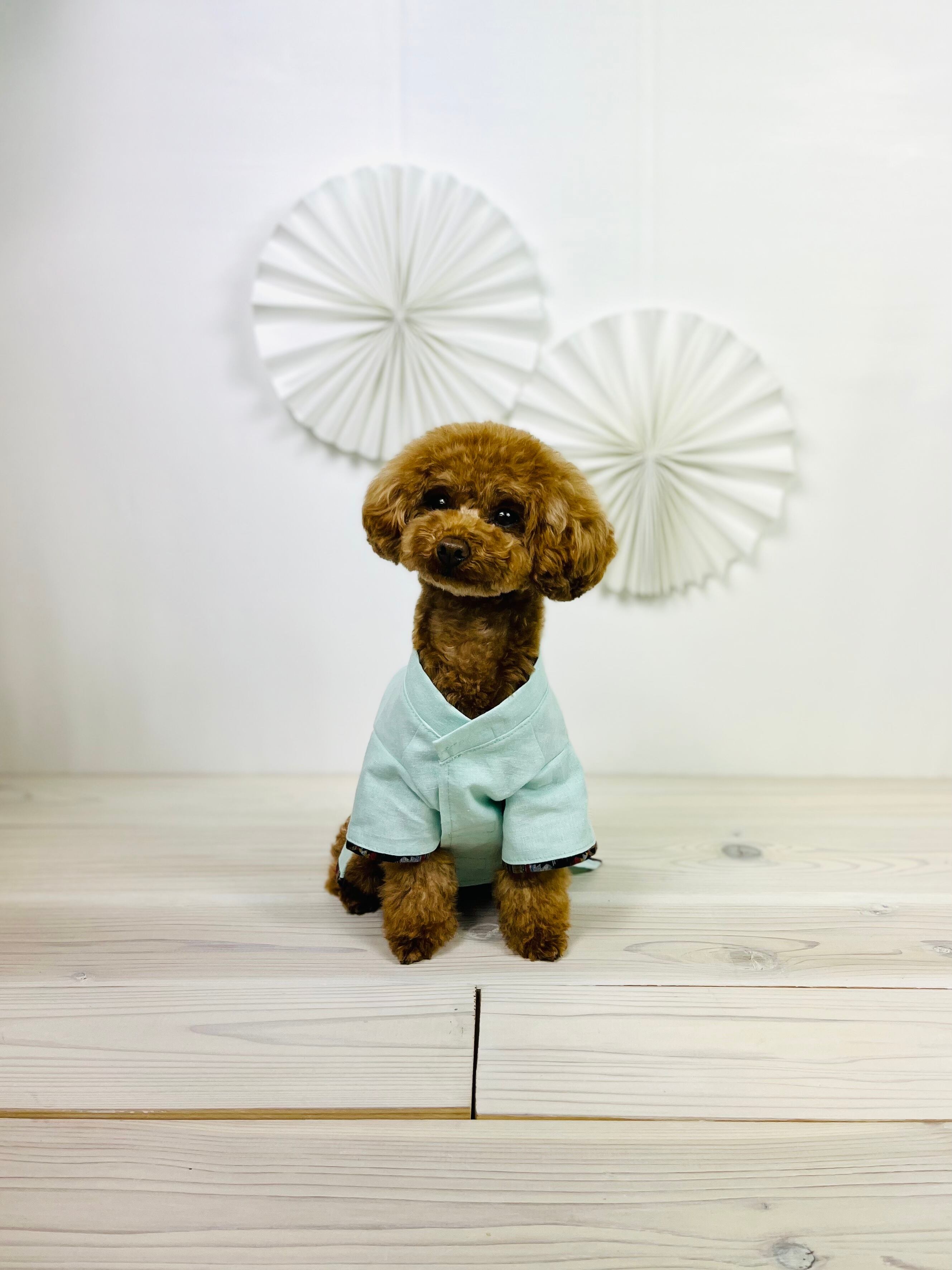 前身頃のマジックテープで微調整が可能ですが、犬種(体格)、毛量、体重によっては、サイズが異なる場合がございます。