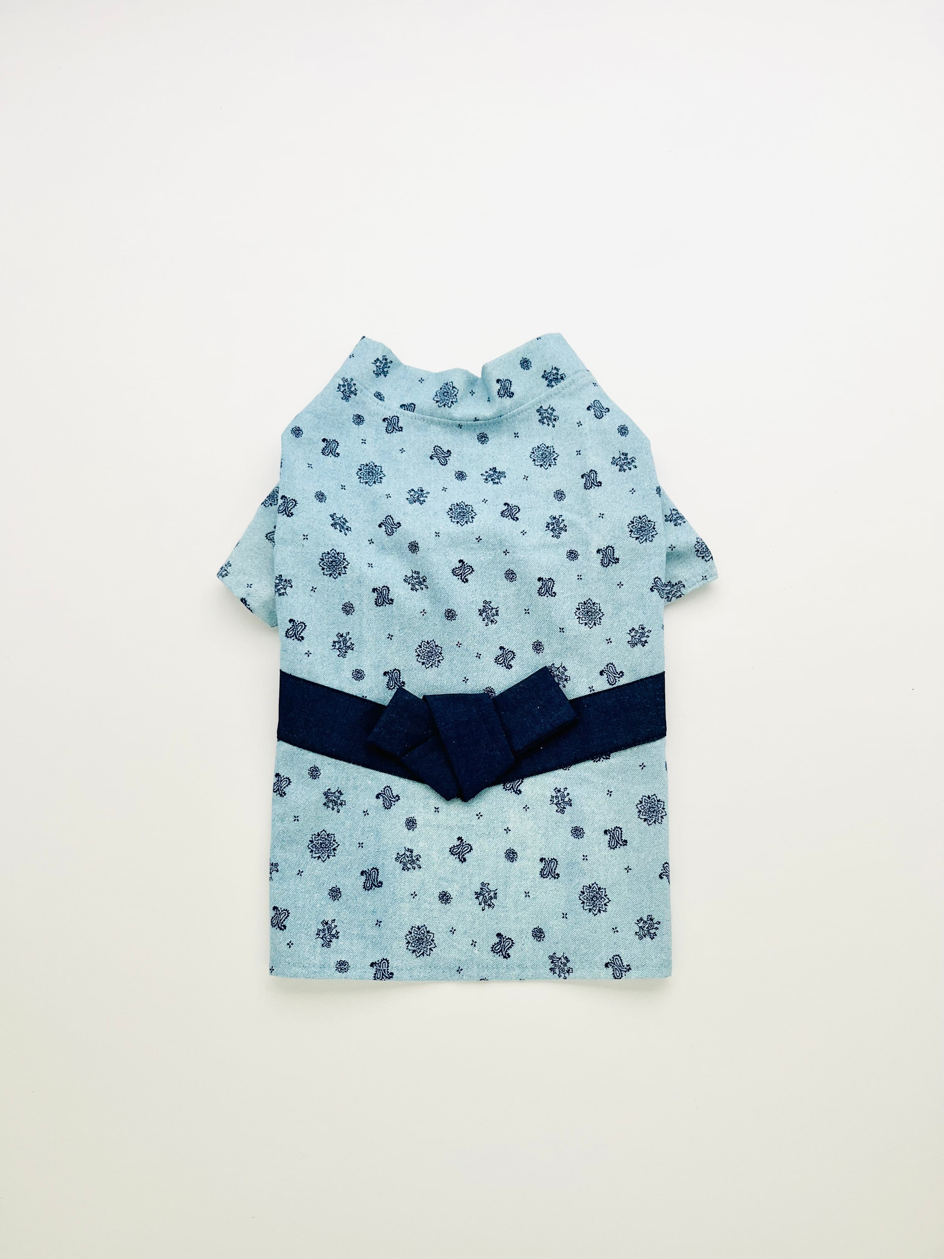 犬用浴衣 ペイズリー調 ライトブルー 4号